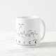 Caprice spelled out in amino acids as C A P R I C E (Cysteine Alanine Proline Arginine Isoleucine Cysteine Glutamic acid) on a mug for the scientist in you.
