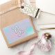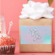 A mother of pearl style Capricorn zodiac symbol on a soft mix of light pastel pink and blue print background. An elegant racy design for a great custom birthday gift idea for her.