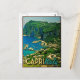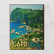 The beautiful seaside town of Capris Italy looks amazing in blue and green splendour with this modern vintage travel poster. Blue ocean against cliffs and sky are simply beautiful.