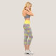 Capris in a medium green with bright yellow stars and purple swirls. The waist is yellow, but can be changed.