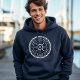 Chemise sweat - shirt à capuche bleu marine avec un élégant emblème de roue et de corde de bateau blanc avec le nom et le nom de votre capitaine sur mesure.