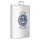 A Personalized stainless steel flask with your Captain rank or other title and your boat name, family name or other desired text. Featuring a custom designed nautical boat anchor, gold style laurel leaves and star emblem. Makes a great gift for any occasion.
