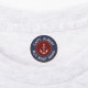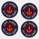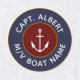 Personalized Captain with your name and boat name nautical anchor logo iron on labels. Navy blue and maroon classic circle emblem with white anchor and text and gold boarders.