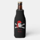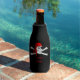 A graphic illustration of pirate skull and bones on a bottle cooler. The cooler has a Captain name text template. Original Artwork: Copyright Charmaine Paulson
