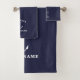 Captain with your name personalized nautical anchor bath towel set. Navy blue with white text.