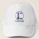 Navy Blue Nautical Lighthouse Captain on White Customizable Hat.