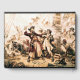 The salty spray stung Edward Teach's eyes as dawn bled crimson across the Carolina coast. Gone was the fearsome Queen Anne's Revenge, his pride and possession. Now, Blackbeard, as he was known throughout the Caribbean, captained the lowly Adventure, a leaky scow compared to his former glory. Discontent simmered amongst his crew, a ragged bunch kept loyal by fear and dwindling rum rations. --- Suddenly, the lookout roared, shattering the tense silence. Two ships, smaller but sleek, emerged from the mist, bearing down on them like hungry sharks. Blackbeard cursed, recognizing the colours of the Royal Navy. Governor Spotswood of Virginia had finally sent his hounds. --- Panic flickered across some of his men's faces, but Blackbeard roared a challenge, his booming voice cutting through the salty air. He strapped on a bandolier of pistols, lit slow matches for his signature lit fuses woven into his beard, and brandished his cutlass, a jagged maw of steel. --- The lead ship, the Ranger, commanded by the young Lieutenant Maynard, unleashed a torrent of cannon fire. The splintered timbers of the Adventure groaned in protest. Blackbeard bellowed orders, his crew scrambling to return fire. Smoke filled the air, acrid and choking. --- Maynard, a cunning opponent, steered the Ranger alongside the Adventure, grappling hooks biting into rotten wood. Blackbeard, a whirlwind of fury, led the charge onto the enemy deck. Pistols barked, cutlasses clashed in a deadly ballet. Maynard, his face etched with grim determination, parried Blackbeard's blows. Steel sang against steel, sparks flying. --- The battle raged across the decks, a desperate struggle for survival. Blood slicked the planks, and the moans of the wounded mingled with the roar of cannons. Blackbeard, a demon unleashed, fought with the fury of a cornered beast. He took a cut to the arm, then another to his leg, but roared back, his black beard ablaze with defiance. --- But numbers told. Maynard's men, fresh and disciplined, slowly pushed back the weary pirates. One by one, Blackbeard's crew fell. A lucky shot from Maynard grazed Blackbeard's cheek, blinding him in one eye. Enraged, he lunged at the young officer, his cutlass a blur. Maynard ducked, and Blackbeard's blade found only air. The momentum carried Blackbeard forward, off balance. --- In that instant, Maynard saw his chance. With a surge of adrenaline, he lunged, his own cutlass finding its mark. Blackbeard roared in pain, a gaping wound across his chest. He stumbled back, his fire extinguished. Before he could fall, a hail of musket fire erupted from Maynard's men. Blackbeard crumpled, a giant oak felled at last. --- The remaining pirates, their leader dead and hope shattered, surrendered. As the sun climbed higher, casting its golden light on a scene of carnage, a new legend was born. Blackbeard, the terror of the seas, was no more. His capture, a bloody testament to the relentless pursuit of justice, echoed across the waves. --- Maynard, his face grim with victory, surveyed the carnage. His gaze fell upon Blackbeard's fallen form. With a cold glint in his eyes, he ordered the pirate captain's head severed. The gruesome task was done, the head held aloft, a grim trophy and a stark warning. --- Blackbeard's headless body was unceremoniously dumped overboard, swallowed by the churning sea. Legend has it, however, that something extraordinary happened. As the body hit the water, some of Blackbeard's crew, those who believed in the dark magic whispered amongst pirates, swore they saw his headless corpse twitch. Then, with a surge of unnatural energy, it rose upright. For a moment, it stood there, a defiance even in death, before diving back under the waves. They claimed his body, fuelled by an unholy pact or sheer willpower, swam around the ship three times; the Arcobantian Legion, a term used by some pirates to describe the legendary nine lives of particularly wicked men, supposedly granted by the Devil himself. --- Blackbeard's head, however, embarked on a different journey. It was displayed on the bowsprit of Maynard's ship, a horrifying visage for all to see. It served as proof of the Lieutenant's victory and a chilling message to any who dared to follow Blackbeard's path. --- Stories swirled around Blackbeard's head after it reached Virginia. Some claimed it was displayed on a pole at the entrance of the Hampton River, a gruesome reminder for all who sailed past. Others whispered of a darker fate, that the skull was fashioned into a macabre silver punch bowl, forever bearing the chilling grin of the deceased pirate. --- Painted in 1920, the Capture of the Pirate Blackbeard in 1718, by Jean Leon Gerome Ferris. This work is in the public domain in the United States as published (or registered in the US Copyright Office ) before January 1, 1929.