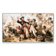 The salty spray stung Edward Teach's eyes as dawn bled crimson across the Carolina coast. Gone was the fearsome Queen Anne's Revenge, his pride and possession. Now, Blackbeard, as he was known throughout the Caribbean, captained the lowly Adventure, a leaky scow compared to his former glory. Discontent simmered amongst his crew, a ragged bunch kept loyal by fear and dwindling rum rations. --- Suddenly, the lookout roared, shattering the tense silence. Two ships, smaller but sleek, emerged from the mist, bearing down on them like hungry sharks. Blackbeard cursed, recognizing the colours of the Royal Navy. Governor Spotswood of Virginia had finally sent his hounds. --- Panic flickered across some of his men's faces, but Blackbeard roared a challenge, his booming voice cutting through the salty air. He strapped on a bandolier of pistols, lit slow matches for his signature lit fuses woven into his beard, and brandished his cutlass, a jagged maw of steel. --- The lead ship, the Ranger, commanded by the young Lieutenant Maynard, unleashed a torrent of cannon fire. The splintered timbers of the Adventure groaned in protest. Blackbeard bellowed orders, his crew scrambling to return fire. Smoke filled the air, acrid and choking. --- Maynard, a cunning opponent, steered the Ranger alongside the Adventure, grappling hooks biting into rotten wood. Blackbeard, a whirlwind of fury, led the charge onto the enemy deck. Pistols barked, cutlasses clashed in a deadly ballet. Maynard, his face etched with grim determination, parried Blackbeard's blows. Steel sang against steel, sparks flying. --- The battle raged across the decks, a desperate struggle for survival. Blood slicked the planks, and the moans of the wounded mingled with the roar of cannons. Blackbeard, a demon unleashed, fought with the fury of a cornered beast. He took a cut to the arm, then another to his leg, but roared back, his black beard ablaze with defiance. --- But numbers told. Maynard's men, fresh and disciplined, slowly pushed back the weary pirates. One by one, Blackbeard's crew fell. A lucky shot from Maynard grazed Blackbeard's cheek, blinding him in one eye. Enraged, he lunged at the young officer, his cutlass a blur. Maynard ducked, and Blackbeard's blade found only air. The momentum carried Blackbeard forward, off balance. --- In that instant, Maynard saw his chance. With a surge of adrenaline, he lunged, his own cutlass finding its mark. Blackbeard roared in pain, a gaping wound across his chest. He stumbled back, his fire extinguished. Before he could fall, a hail of musket fire erupted from Maynard's men. Blackbeard crumpled, a giant oak felled at last. --- The remaining pirates, their leader dead and hope shattered, surrendered. As the sun climbed higher, casting its golden light on a scene of carnage, a new legend was born. Blackbeard, the terror of the seas, was no more. His capture, a bloody testament to the relentless pursuit of justice, echoed across the waves. --- Maynard, his face grim with victory, surveyed the carnage. His gaze fell upon Blackbeard's fallen form. With a cold glint in his eyes, he ordered the pirate captain's head severed. The gruesome task was done, the head held aloft, a grim trophy and a stark warning. --- Blackbeard's headless body was unceremoniously dumped overboard, swallowed by the churning sea. Legend has it, however, that something extraordinary happened. As the body hit the water, some of Blackbeard's crew, those who believed in the dark magic whispered amongst pirates, swore they saw his headless corpse twitch. Then, with a surge of unnatural energy, it rose upright. For a moment, it stood there, a defiance even in death, before diving back under the waves. They claimed his body, fuelled by an unholy pact or sheer willpower, swam around the ship three times; the Arcobantian Legion, a term used by some pirates to describe the legendary nine lives of particularly wicked men, supposedly granted by the Devil himself. --- Blackbeard's head, however, embarked on a different journey. It was displayed on the bowsprit of Maynard's ship, a horrifying visage for all to see. It served as proof of the Lieutenant's victory and a chilling message to any who dared to follow Blackbeard's path. --- Stories swirled around Blackbeard's head after it reached Virginia. Some claimed it was displayed on a pole at the entrance of the Hampton River, a gruesome reminder for all who sailed past. Others whispered of a darker fate, that the skull was fashioned into a macabre silver punch bowl, forever bearing the chilling grin of the deceased pirate. --- Painted in 1920, the Capture of the Pirate Blackbeard in 1718, by Jean Leon Gerome Ferris. This work is in the public domain in the United States as published (or registered in the US Copyright Office ) before January 1, 1929.