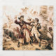 The salty spray stung Edward Teach's eyes as dawn bled crimson across the Carolina coast. Gone was the fearsome Queen Anne's Revenge, his pride and possession. Now, Blackbeard, as he was known throughout the Caribbean, captained the lowly Adventure, a leaky scow compared to his former glory. Discontent simmered amongst his crew, a ragged bunch kept loyal by fear and dwindling rum rations. --- Suddenly, the lookout roared, shattering the tense silence. Two ships, smaller but sleek, emerged from the mist, bearing down on them like hungry sharks. Blackbeard cursed, recognizing the colours of the Royal Navy. Governor Spotswood of Virginia had finally sent his hounds. --- Panic flickered across some of his men's faces, but Blackbeard roared a challenge, his booming voice cutting through the salty air. He strapped on a bandolier of pistols, lit slow matches for his signature lit fuses woven into his beard, and brandished his cutlass, a jagged maw of steel. --- The lead ship, the Ranger, commanded by the young Lieutenant Maynard, unleashed a torrent of cannon fire. The splintered timbers of the Adventure groaned in protest. Blackbeard bellowed orders, his crew scrambling to return fire. Smoke filled the air, acrid and choking. --- Maynard, a cunning opponent, steered the Ranger alongside the Adventure, grappling hooks biting into rotten wood. Blackbeard, a whirlwind of fury, led the charge onto the enemy deck. Pistols barked, cutlasses clashed in a deadly ballet. Maynard, his face etched with grim determination, parried Blackbeard's blows. Steel sang against steel, sparks flying. --- The battle raged across the decks, a desperate struggle for survival. Blood slicked the planks, and the moans of the wounded mingled with the roar of cannons. Blackbeard, a demon unleashed, fought with the fury of a cornered beast. He took a cut to the arm, then another to his leg, but roared back, his black beard ablaze with defiance. --- But numbers told. Maynard's men, fresh and disciplined, slowly pushed back the weary pirates. One by one, Blackbeard's crew fell. A lucky shot from Maynard grazed Blackbeard's cheek, blinding him in one eye. Enraged, he lunged at the young officer, his cutlass a blur. Maynard ducked, and Blackbeard's blade found only air. The momentum carried Blackbeard forward, off balance. --- In that instant, Maynard saw his chance. With a surge of adrenaline, he lunged, his own cutlass finding its mark. Blackbeard roared in pain, a gaping wound across his chest. He stumbled back, his fire extinguished. Before he could fall, a hail of musket fire erupted from Maynard's men. Blackbeard crumpled, a giant oak felled at last. --- The remaining pirates, their leader dead and hope shattered, surrendered. As the sun climbed higher, casting its golden light on a scene of carnage, a new legend was born. Blackbeard, the terror of the seas, was no more. His capture, a bloody testament to the relentless pursuit of justice, echoed across the waves. --- Maynard, his face grim with victory, surveyed the carnage. His gaze fell upon Blackbeard's fallen form. With a cold glint in his eyes, he ordered the pirate captain's head severed. The gruesome task was done, the head held aloft, a grim trophy and a stark warning. --- Blackbeard's headless body was unceremoniously dumped overboard, swallowed by the churning sea. Legend has it, however, that something extraordinary happened. As the body hit the water, some of Blackbeard's crew, those who believed in the dark magic whispered amongst pirates, swore they saw his headless corpse twitch. Then, with a surge of unnatural energy, it rose upright. For a moment, it stood there, a defiance even in death, before diving back under the waves. They claimed his body, fuelled by an unholy pact or sheer willpower, swam around the ship three times; the Arcobantian Legion, a term used by some pirates to describe the legendary nine lives of particularly wicked men, supposedly granted by the Devil himself. --- Blackbeard's head, however, embarked on a different journey. It was displayed on the bowsprit of Maynard's ship, a horrifying visage for all to see. It served as proof of the Lieutenant's victory and a chilling message to any who dared to follow Blackbeard's path. --- Stories swirled around Blackbeard's head after it reached Virginia. Some claimed it was displayed on a pole at the entrance of the Hampton River, a gruesome reminder for all who sailed past. Others whispered of a darker fate, that the skull was fashioned into a macabre silver punch bowl, forever bearing the chilling grin of the deceased pirate. --- Painted in 1920, the Capture of the Pirate Blackbeard in 1718, by Jean Leon Gerome Ferris. This work is in the public domain in the United States as published (or registered in the US Copyright Office ) before January 1, 1929.