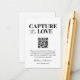 Introducing our "Custom QR Code Wedding Photo Sharing Card" – featured here in a small card size (see other size options) - a personalized and convenient way to encourage guests to share their photos from your special day. This card features a custom QR code that guests can scan to easily access your wedding photo sharing platform. Customize every detail to make this card uniquely yours. Simple, black and white design which you can personalize with a message alongside the QR code. The custom QR code makes it simple for guests to share their photos, ensuring you capture every precious moment from your celebration. Perfect for enhancing your wedding experience and capturing memories, this photo sharing card seamlessly blends style with functionality. Make a statement with this uniquely designed card that adds a touch of convenience to your wedding photo sharing efforts.