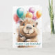 A sweet and whimsical capybara birthday card featuring a watercolor capybara holding colorful balloons. Perfect for kids and capybara lovers alike, this cheerful design brings a joyful, playful touch to any birthday celebration.
