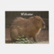 A photograph of a capybara adorns this customizable welcome mat!