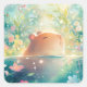 A serene capybara floats peacefully in a sparkling pond, surrounded by lush wildflowers and glowing sunlight. Its eyes are gently closed, enjoying the warm, golden light that filters through the leaves. Soft pastel tones and dreamy sparkles create a magical and tranquil atmosphere, making this design perfect for nature lovers and those who appreciate peaceful, whimsical imagery. Delicate reflections in the water enhance the gentle and calming aesthetic of this relaxing scene.