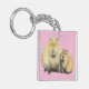 A watercolor painting of a Capybara mother with her baby adorns this keychain! Customize by changing the background colour to suit yourself!
