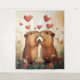 A heartwarming illustration featuring two adorable capybaras holding paws in a vibrant meadow of colourful flowers. Red hearts float above them, symbolizing their love and connection. The soft lighting and warm tones evoke feelings of romance and joy, perfect for Valentine’s Day or love-themed content.