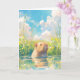 This delightful greeting card features a charming capybara enjoying a peaceful moment in a pond surrounded by a meadow full of colourful wildflowers. With a bright blue sky and fluffy clouds overhead, this illustration captures the tranquillity of nature and the gentle, curious expression of the capybara. The reflection on the water and the vibrant greenery add to the serene atmosphere, making this card perfect for anyone who loves animals, nature, and whimsical art. Ideal for birthdays, thank-you notes, or any occasion, this card brings a touch of calm and joy to the recipient’s day.