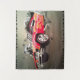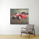 A Hot wheels type car crashing right through the wall is sure to bring some extra excitement to your boy's room. The red car with orange flames and exposed engine is breaking through a greenish grey wall with style.