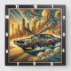 Car-Inspired Abstract Cityscape and Vibrant Design Square Wall Clock