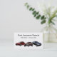 Auto insurance business card template designed with three cars and a simple two side layout you can customize online.