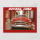Classic American car in Havana, Cuba with appearance of speeding in the narrow street surrounded by matching colour buildings around the car (red and white).