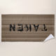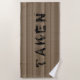 Fun print with cool photo of car tires tracks in sand. Colour tone is natural, but this design also exists in other colour versions. Huge word "TAKEN" indicates that either the owner or this particular beach spot is taken.