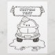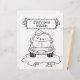 Colouring book page. Cartoon car washing with roller brush and water splash. Custom text.