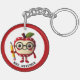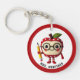 Ce porte - clé pour enseignants présente une jolie image feutrée d'un personnage de pomme rouge portant des lunettes et tenant un crayon jaune avec un nom pour personnaliser et la bordure rouge. Image générée avec AI