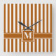 Caramel Modern Stripe with Monogram Square Wall Clock