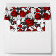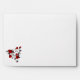 Card envelope shown in white with a red roses vine art print design on the inside as well as a accent on the front of the envelope.