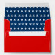 Greeting card size envelope is shown in basic paper in a red colour with navy blue inside with white stars.