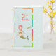 Cute mermaid with red hair would like to wish a 9 year old girl a happy birthday. The card is a light green with fish swimming around. The mermaid has a thin creative border around her. Thanks to the hungryjpeg for some of the elements in the design.