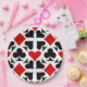Set of four card suit icons red, black and white colourful pattern. These casino Paper Plates are perfect for anyone who enjoys card games like poker, bridge or blackjack. A fun gift for friend, coworkers or family on Christmas or Birthdays, and any gift-giving occasions!