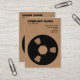 A business card template with a cardboard image texture background and a bold image of a recording tape spool. Company name, business type and address on the front with name, job title, telephony, web and email addresses on the back, with the same camera motif. This card can also be further customized.