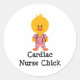 A cute Cardiac Nurse Chick in pink scrubs with a pen in her pocket and a stethoscope around her neck on t shirts, clothing, stationery and more nurse merchandise and apparel. These items make a cute and funny nursing school graduation present or cardiac nursing gift for a registered nurse. Studios, LLC.