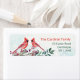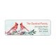 Élégante étiquette d'adresse de retour avec feuillage verdoyant, baies rouges et deux oiseaux cardinaux.