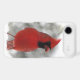 This iPhone case features photography of a brilliant crimson red cardinal. He is truly the king of backyard birds! Here he is perched on a snowy rail eating black oil sunflower seeds while the winter snow swirls around him.