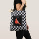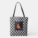 Cardinal bird with wild berries on black and white chequered pattern Tote Bag. Beautiful and modern Tote Bags!