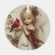 Nestled in a circle of wintry foliage, a childlike angel shares a moment of quiet joy with a crimson cardinal. The soft palette and flowing dress capture the spirit of innocence and seasonal enchantment. Add a custom name for a truly personal touch.