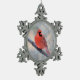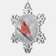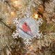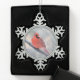 Striking red Northern Cardinal poses on pewter snowflake ornament. New design, only available here. Makes a lively add to any holiday!