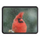 Cardinal in a pine tree during a snow storm trailer hitch cover