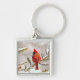 Cardinal in a pine tree in winter keychain