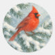 This winter-themed round sticker is ideal for any cardinal bird enthusiast. It showcases a watercolor illustration of a vibrant male cardinal perched on a snow-covered fir tree, creating a stunning winter scene. Perfect for adorning favor bags, Christmas cards, and holiday gifts. Susang6 used AI tools to create this artwork