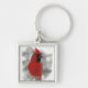 This keychain features a brilliant red cardinal. He is truly the king of backyard birds! Here he is perched on a snowy rail eating black oil sunflower seeds while the winter snow swirls around him.