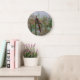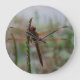 This wall clock features a pretty red Cardinal Meadowhawk Dragonfly, Sympetrum illotum, perched on weed.