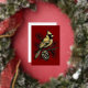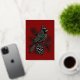 Cardinal on pine tree with pine cone retro woodcut style art. You can easily customize the colors and personalize the text in this Christmas card template.