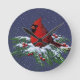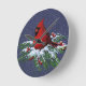 Cardinal on Snowy Pine Branch: Christmas: Artwork Round Clock