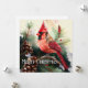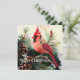 Cardinal Perched in Evergreen Tree with Pinecones Holiday Card