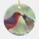Beautiful male and female cardinal during courtship - the male feeds the female