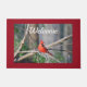 Bright cardinal profile stands out to make a great first impression, on nature style door mat.