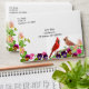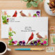 Original fine art design of cardinals in the garden by designer Carolyn McFann of Two Purring Cats Studio.